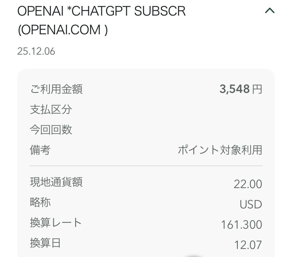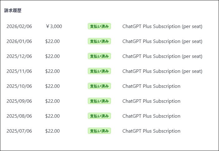 - 2025/07〜2026/01:$22 × 円安 = 実質3,400〜3,700円コース