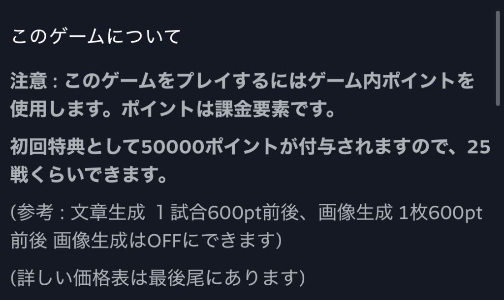 - 最初のポイントで十分遊べる