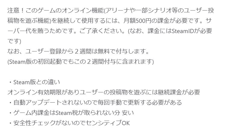BOOTH版は「遊ばなくても毎月500円」。
