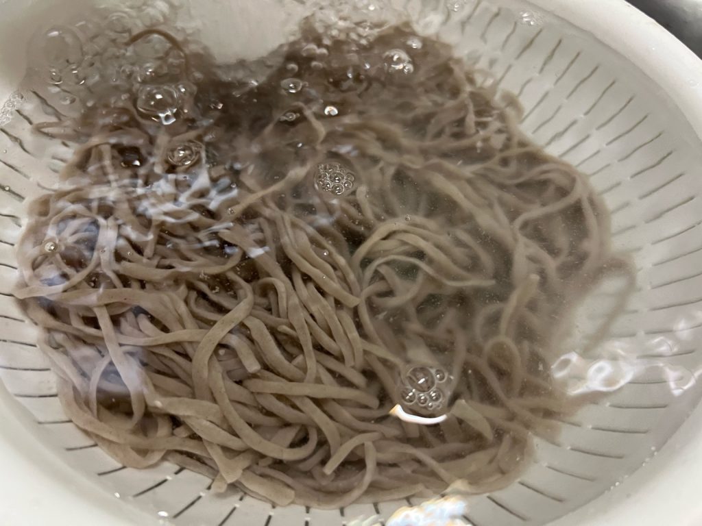 そばの粉っぽさが残ってるときは、この「揉み洗い」で香りが立ってのどごしが段違いになる。