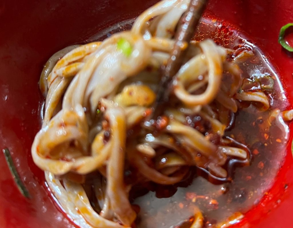 ラー油の辛味が油分で包まれてるから、ツルッと入ってくるのに後からじわっと来るやつ。