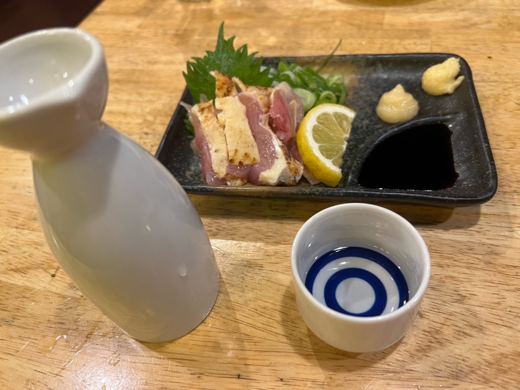 このタイミングで宮崎地鶏の刺身+日本酒は、完全に“勝ち確の追撃”。