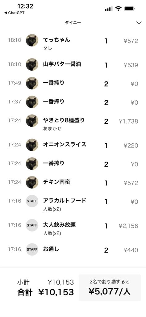 ナツ ChatGPT注文はQRだけど口頭でもできるのな