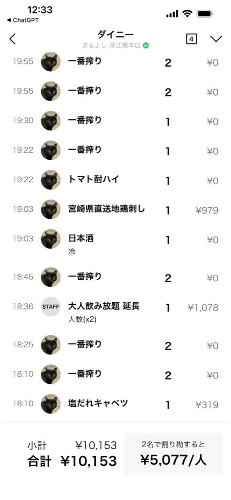 ナツ ChatGPTドリンクだけでも1万円分くらい飲んでる