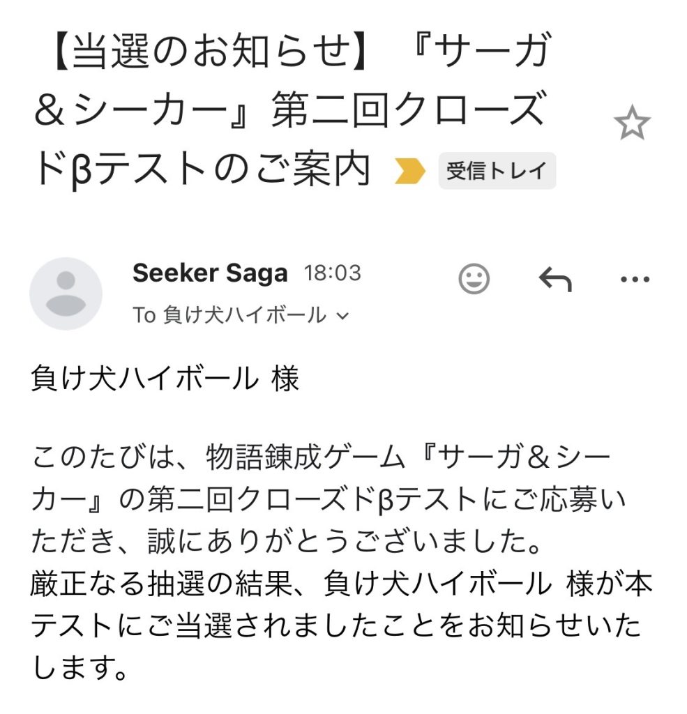 マケハイ『Saga & Seeker』(サーガ&シーカー)通称サガシカの2回目のCBT当たった話はしたよね