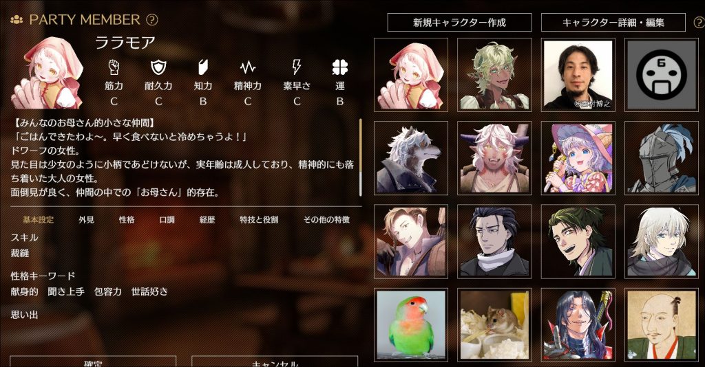 登場するキャラクターも自由に作成でき、性格や口調、立ち位置まで細かく設定可能。