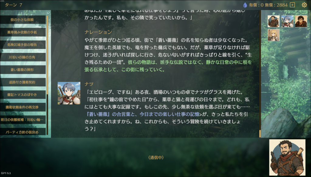 で、まだ ターン7 のこの場面ってことは「1話(1依頼)」換算だとけっこう重い寄りだね。