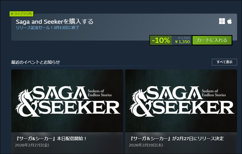- Steamストア:価格・セール期限(画像だと-10%で¥1,350)とレビュー欄の初動チェック