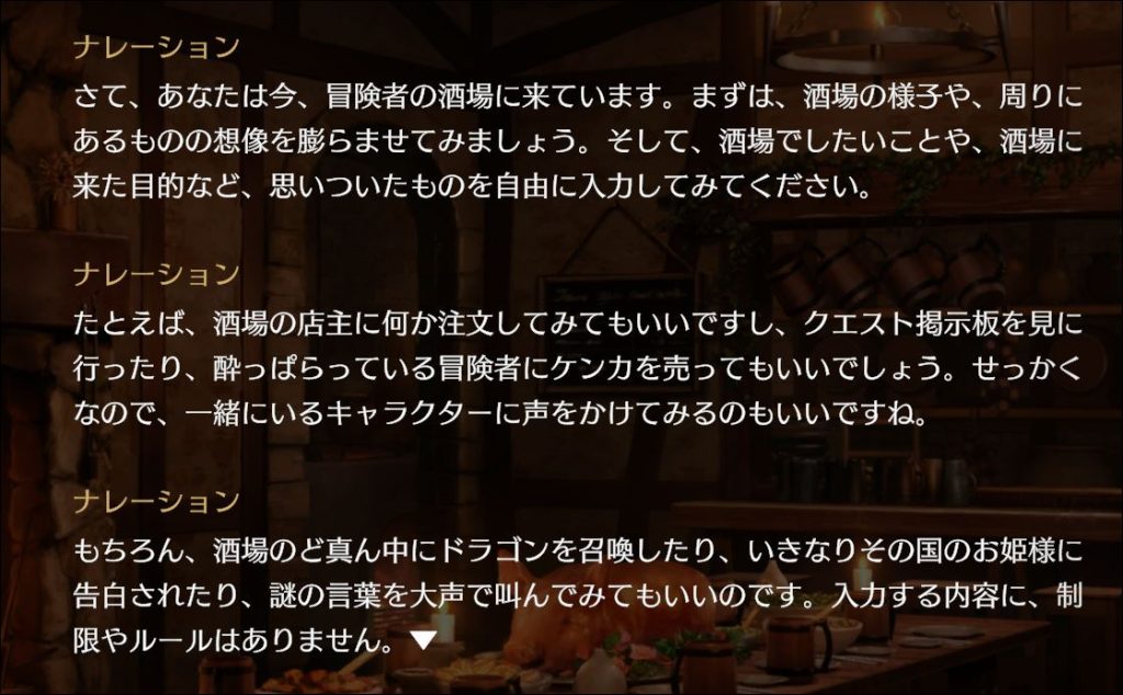 AIが状況描写と次の展開を返してくる。