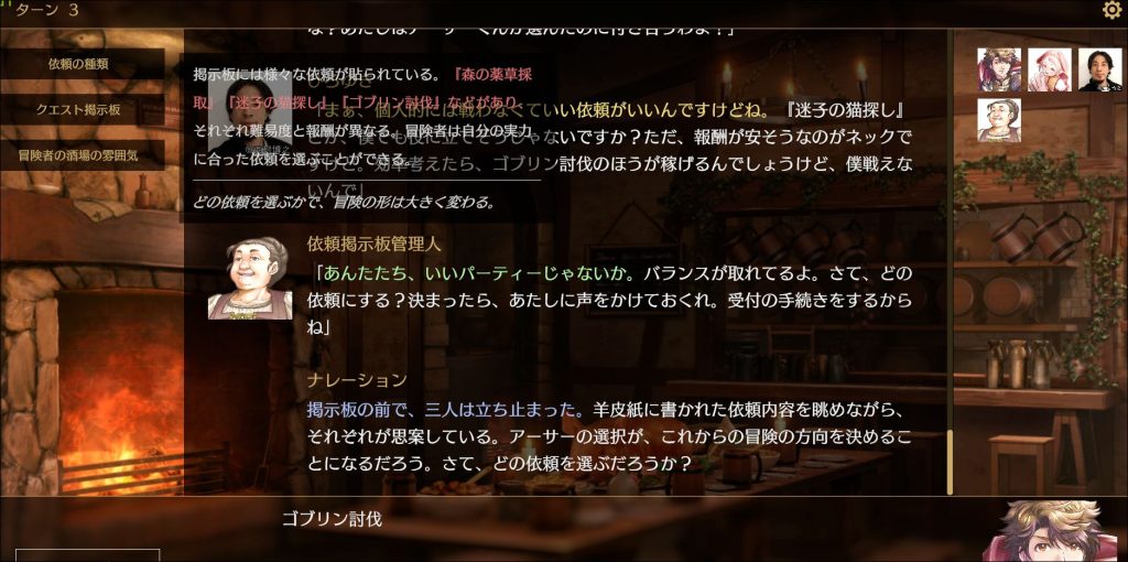 - 右側に「今この場に参加しているキャラクター」が表示される