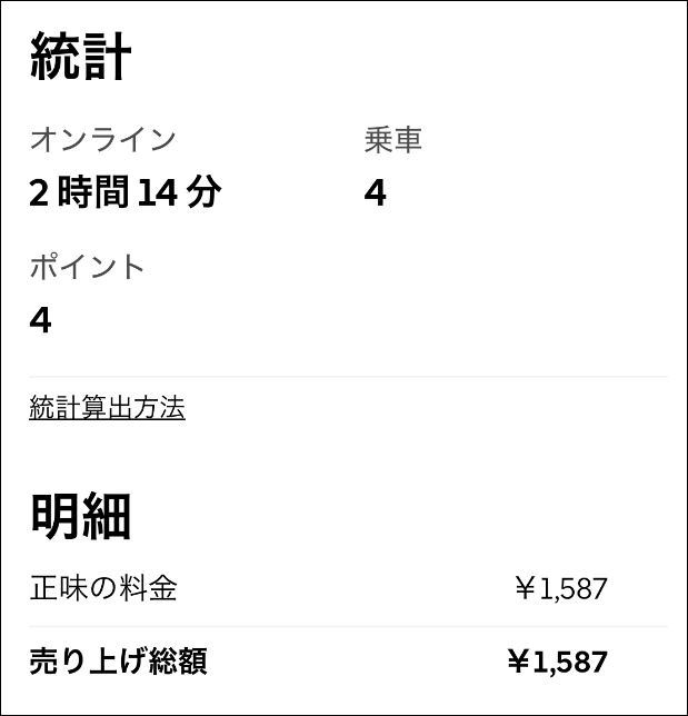 - 一部のフラットレートは「リクエストを受け付けていた時間(稼働時間)」や「アプリを開いていたエリア」が基準になっています。