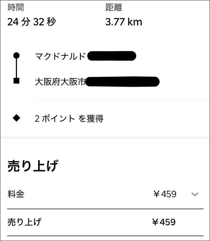マケハイまあ今回の詳細は最初はフラってレートで受けてそのあと2件がクソ案件すぎて拒否 全く逆方向で客に迷惑がかかると思ったから、そこでフラットレートは終了 でも2軒持ち行かせようと更に鳴って追加報酬4キロ400円くらいの受け手配ったらコレ😭